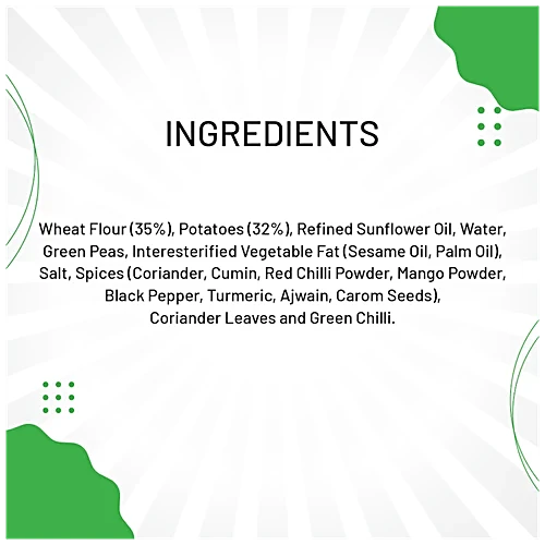 : According tohttps://abuu.in , the samosas are made with wheat flour, potatoes, refined sunflower oil, green peas, and a blend of spices