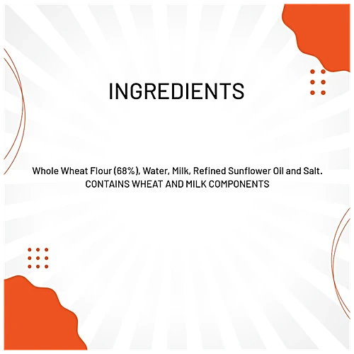 Simple ingredients: The listed ingredients include whole wheat flour, water, milk, refined sunflower oil, and salt.