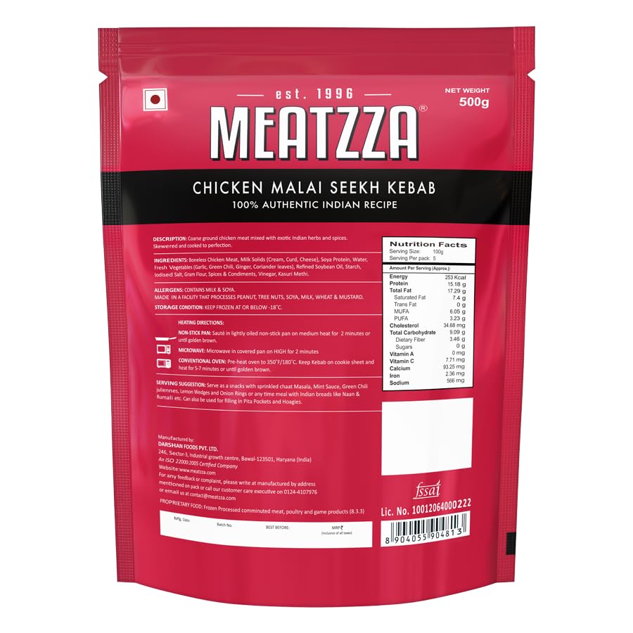 You can purchase the Meatzza Chicken Malai Seekh Kebab (500 g) from several online grocery and delivery platforms: