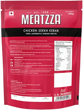 Based on your request, here is information on theMeatzza Chicken Seekh Kebab 500 g, including buying options and nutritional details. This product is a ready-to-cook frozen item, featuring tender chicken meat mixed with spices.