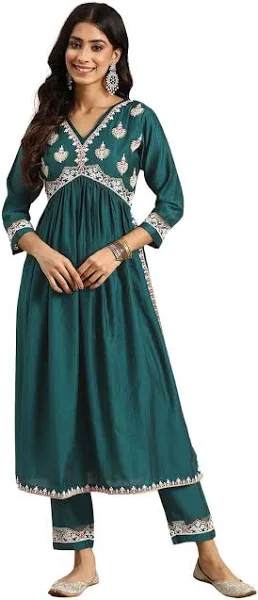 Amayra Women's Embroidered Alia Cut Regular Kurta with Pant