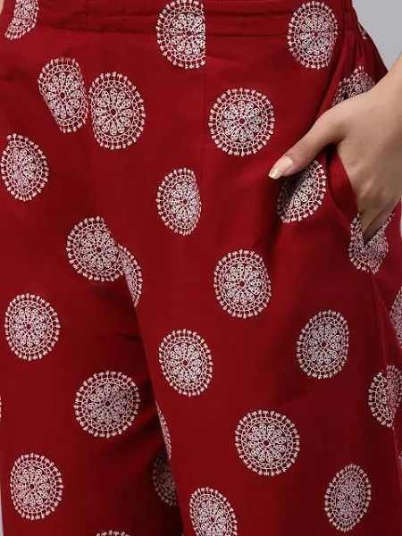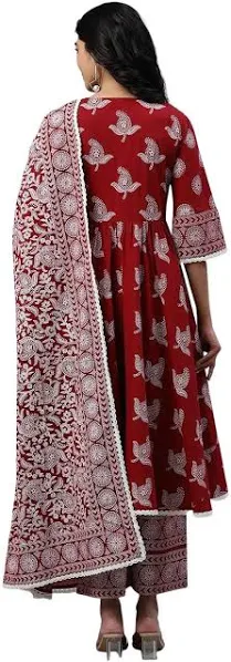Amayra Women's Rayon Printed Maroon Anarkali Kurta with Palazzos and Dupatta Set